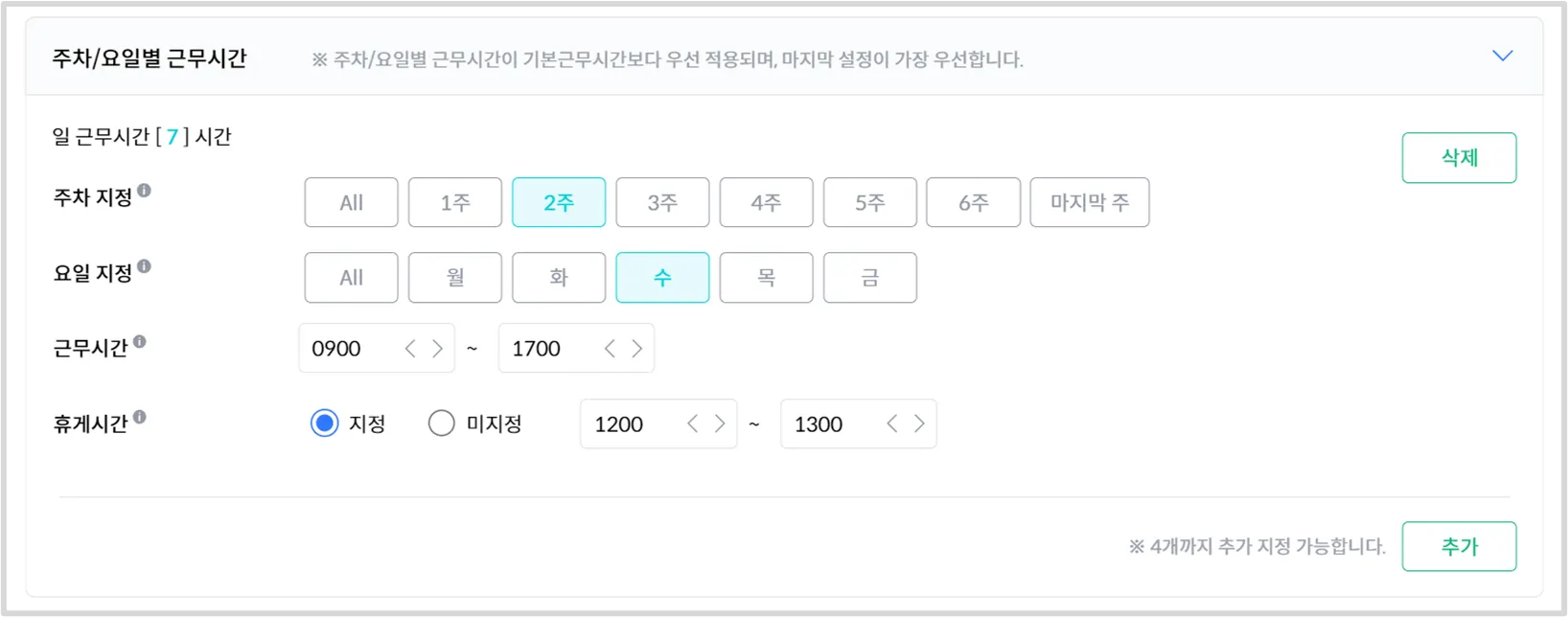 특정 주차나 요일에만 근무시간을 다르게 설정하는 방법! 함께 알아볼까요?