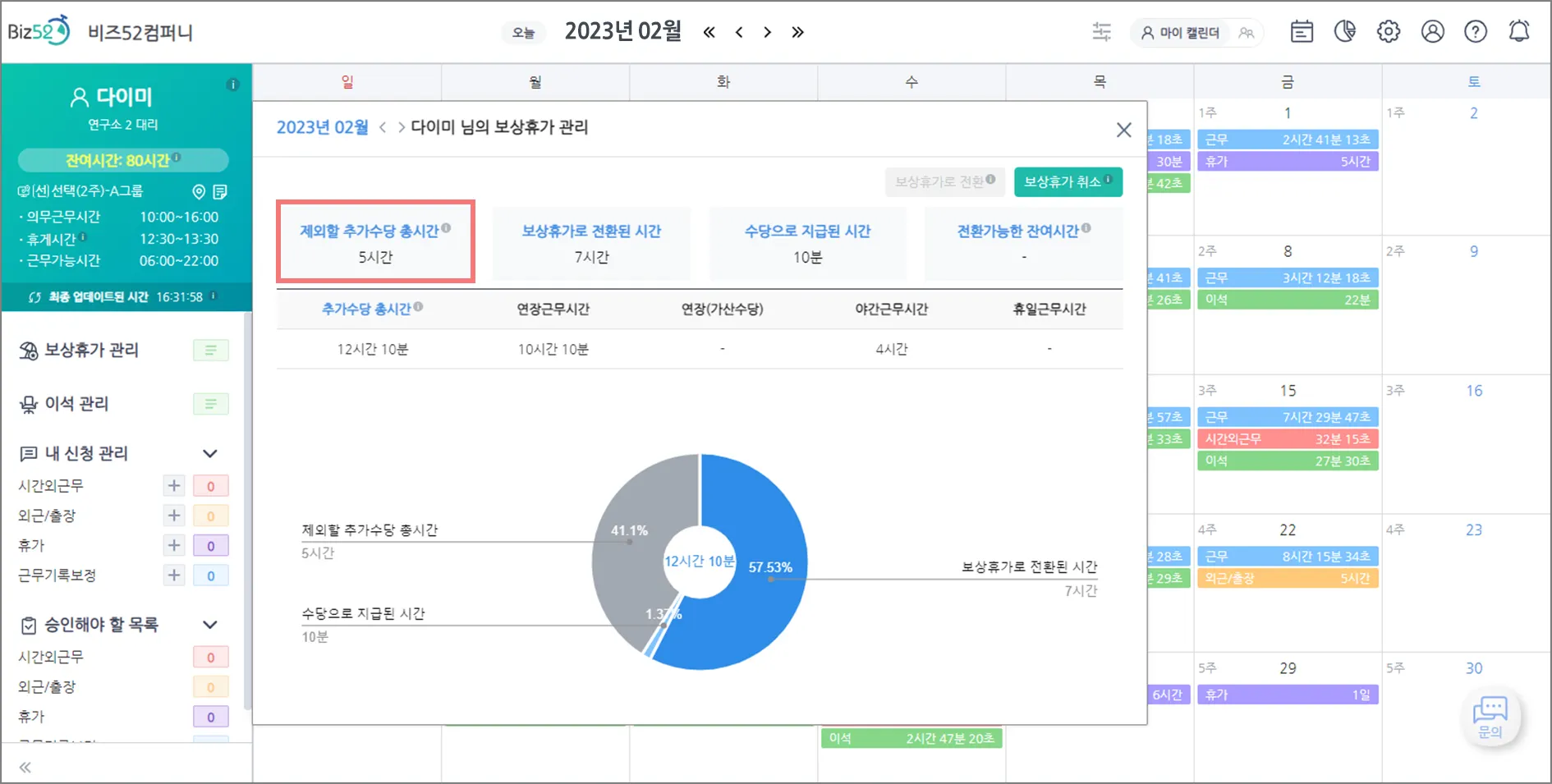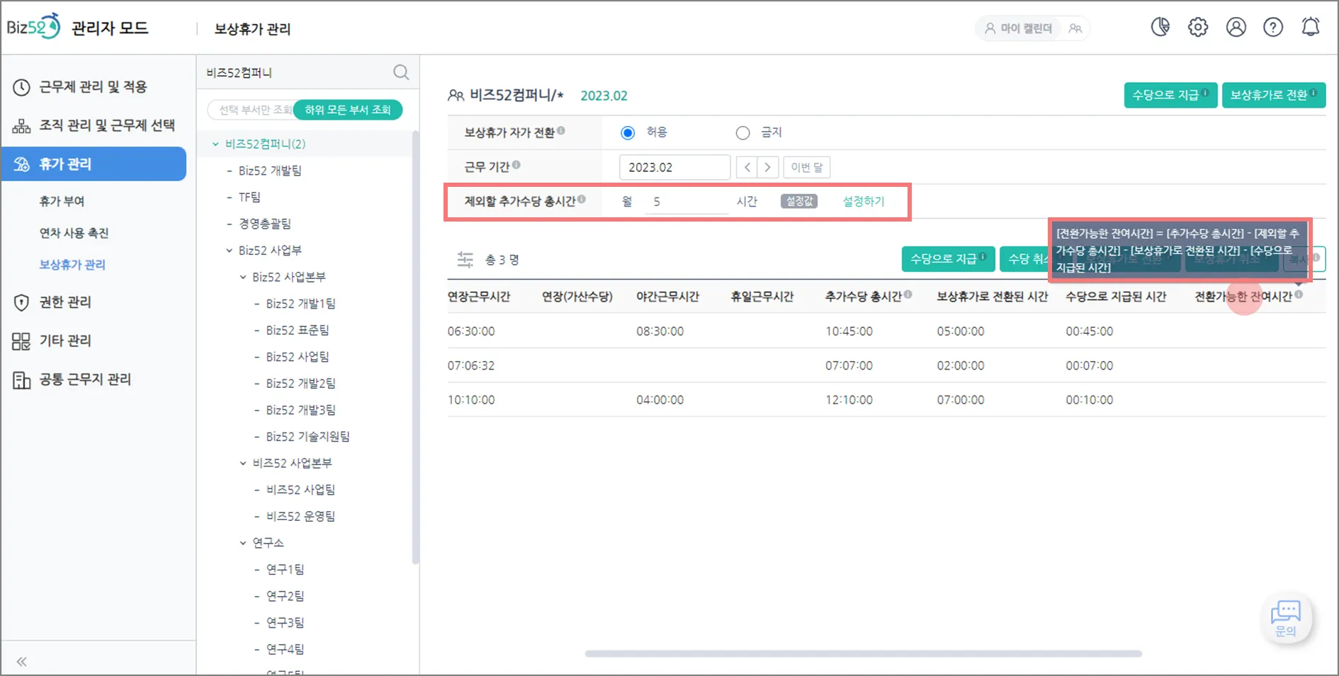 - [보상휴가] “제외할 추가수당 총시간” 기능 추가