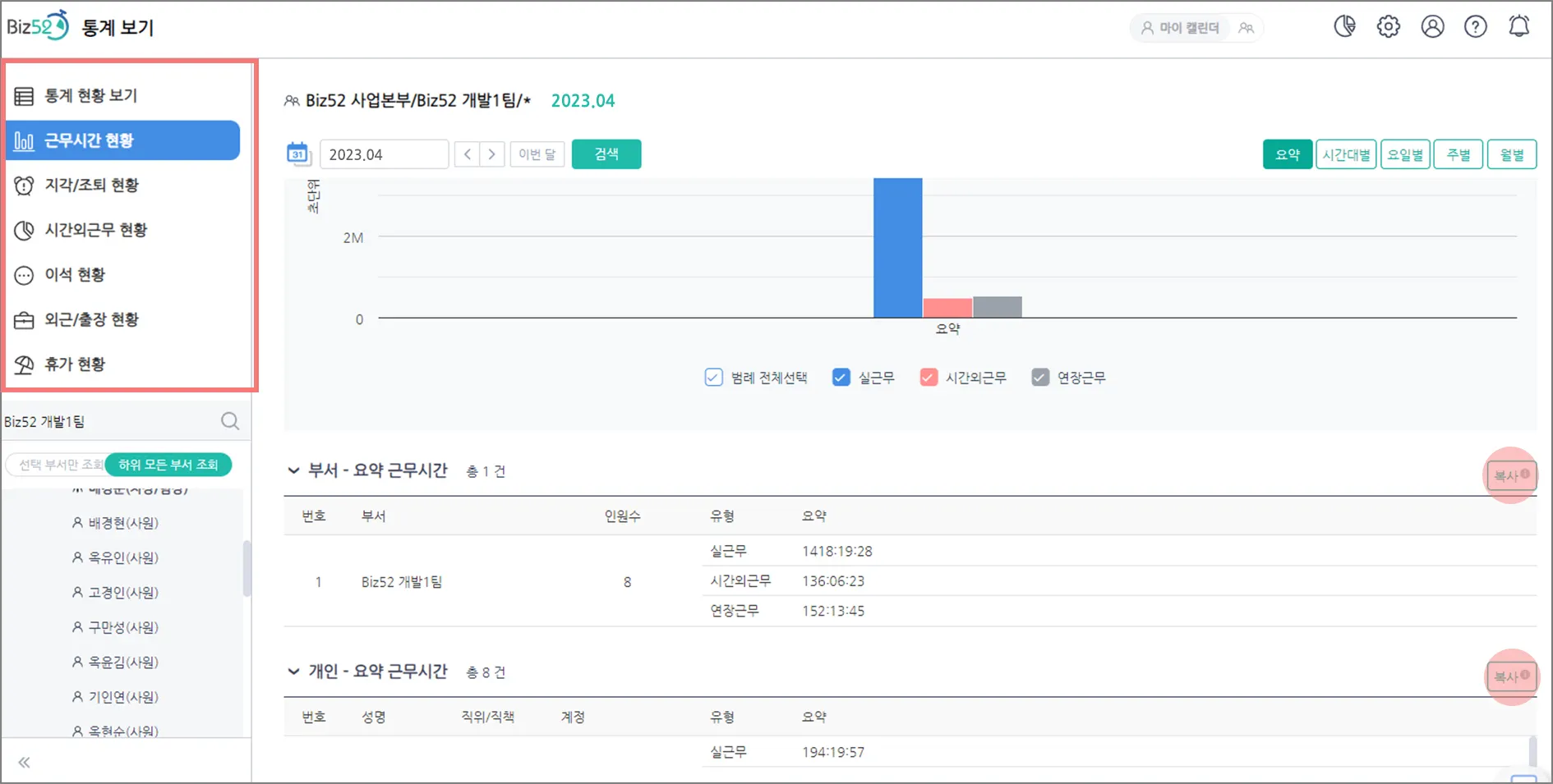 - ’통계보기>xxx 현황>부서/개인 목록’에 [복사] 기능 추가로 데이터 정리가 더욱 쉬워졌습니다.