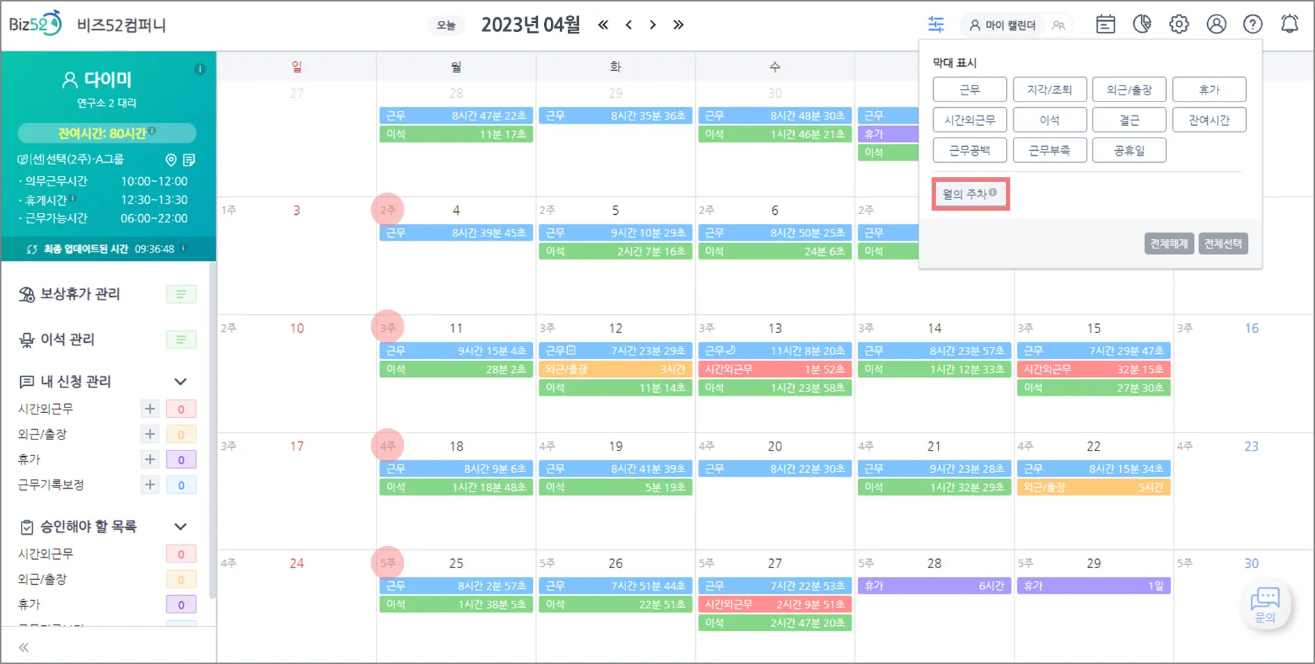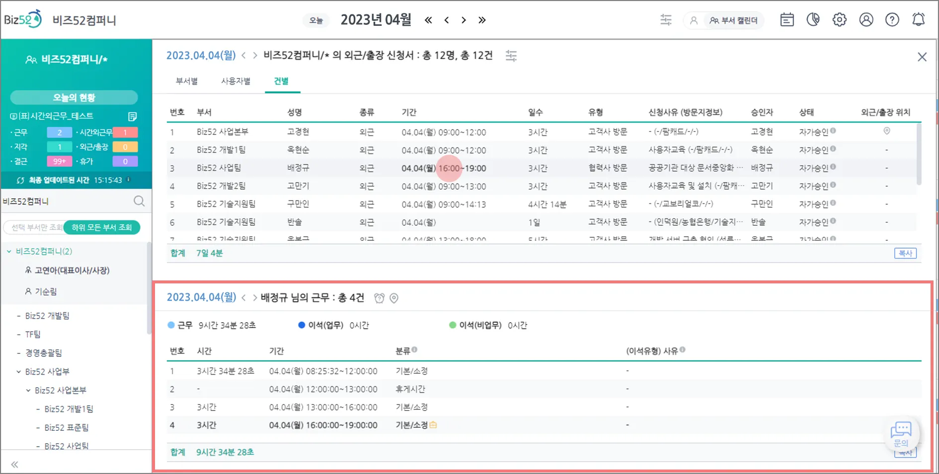 4. [웹 캘린더] “전사용자 현재 근무상황 공유” 기능 추가