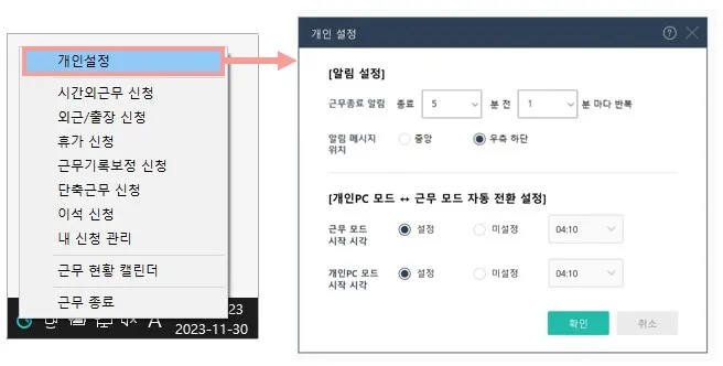PC-OFF 서비스를 사용하는 “선택근무제” 사용자의 경우, “개인 PC모드”와 “근무 모드”를 전환하며 사용하는 경우가 있을텐데요,