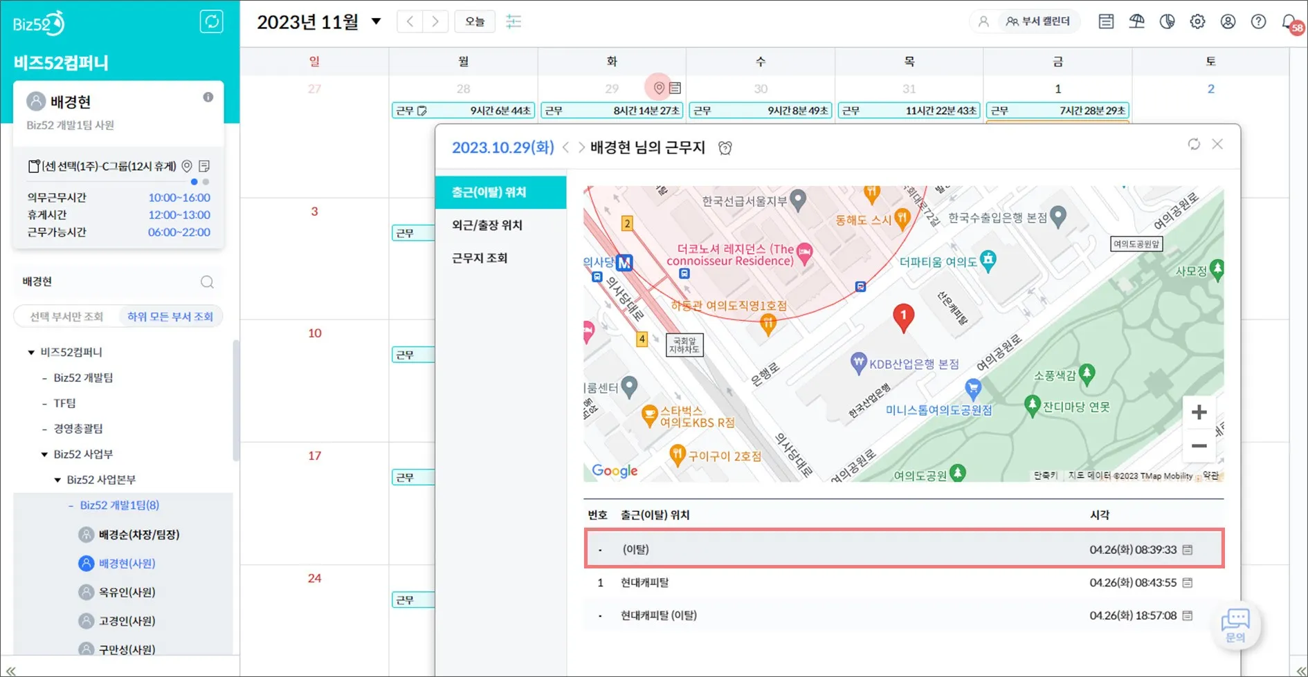위치 기반의 근무제를 사용하시는 경우, 웹 캘린더를 통해 출근 위치와 이탈 위치를 확인할 수 있었는데요,