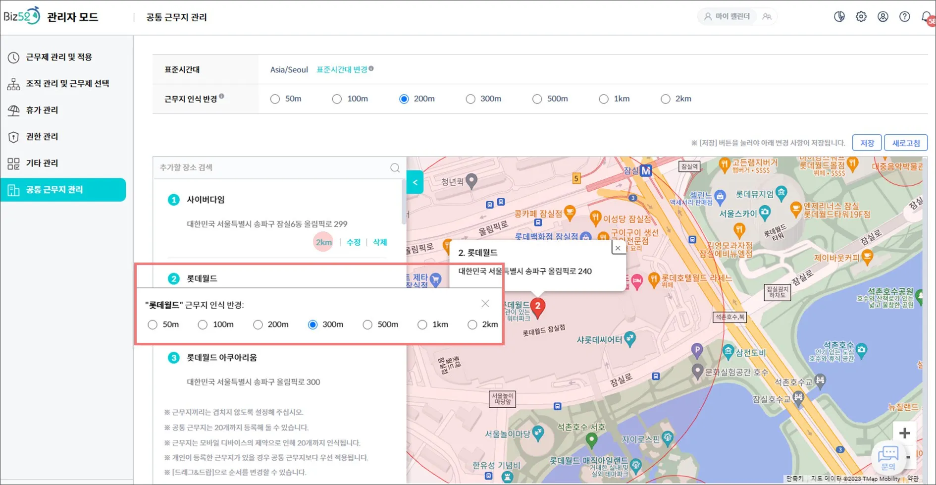 - [관리자 모드>공통근무지 관리] "근무지별" 인식 반경 설정 기능 추가