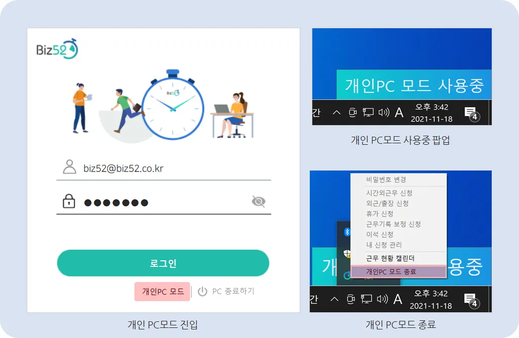 “PC를 근무 종료 후에 개인 용도로 사용하는데 Biz52 활성화 없이 사용할 수 없나요?”