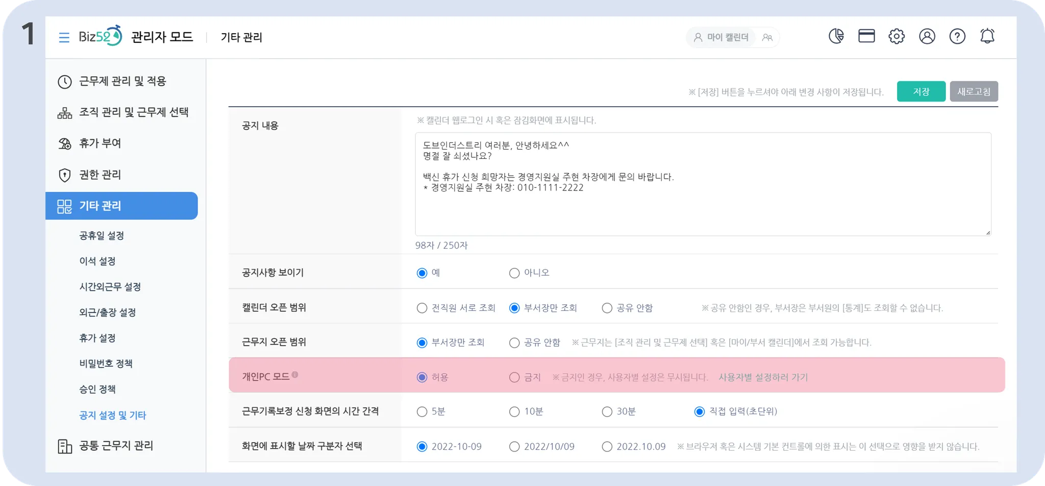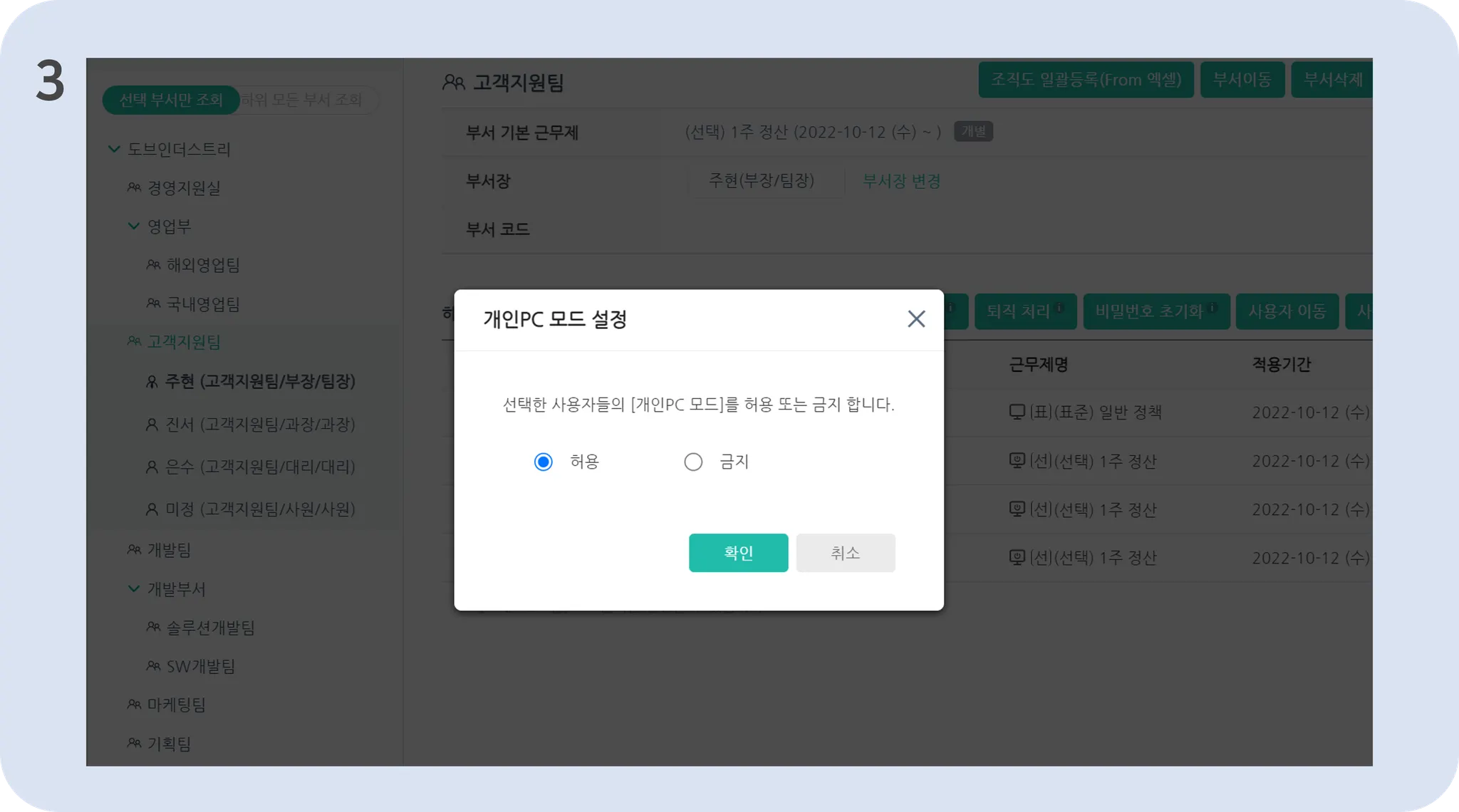 본인의 근무시간에 맞춰 “근무모드 시작 시각”과 “개인PC모드 시작 시각”을 설정해 두시면, 자동으로 모드가 전환되어 더욱 편리하게 이용하실 수 있습니다.