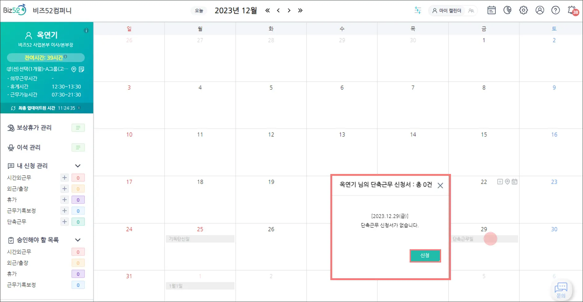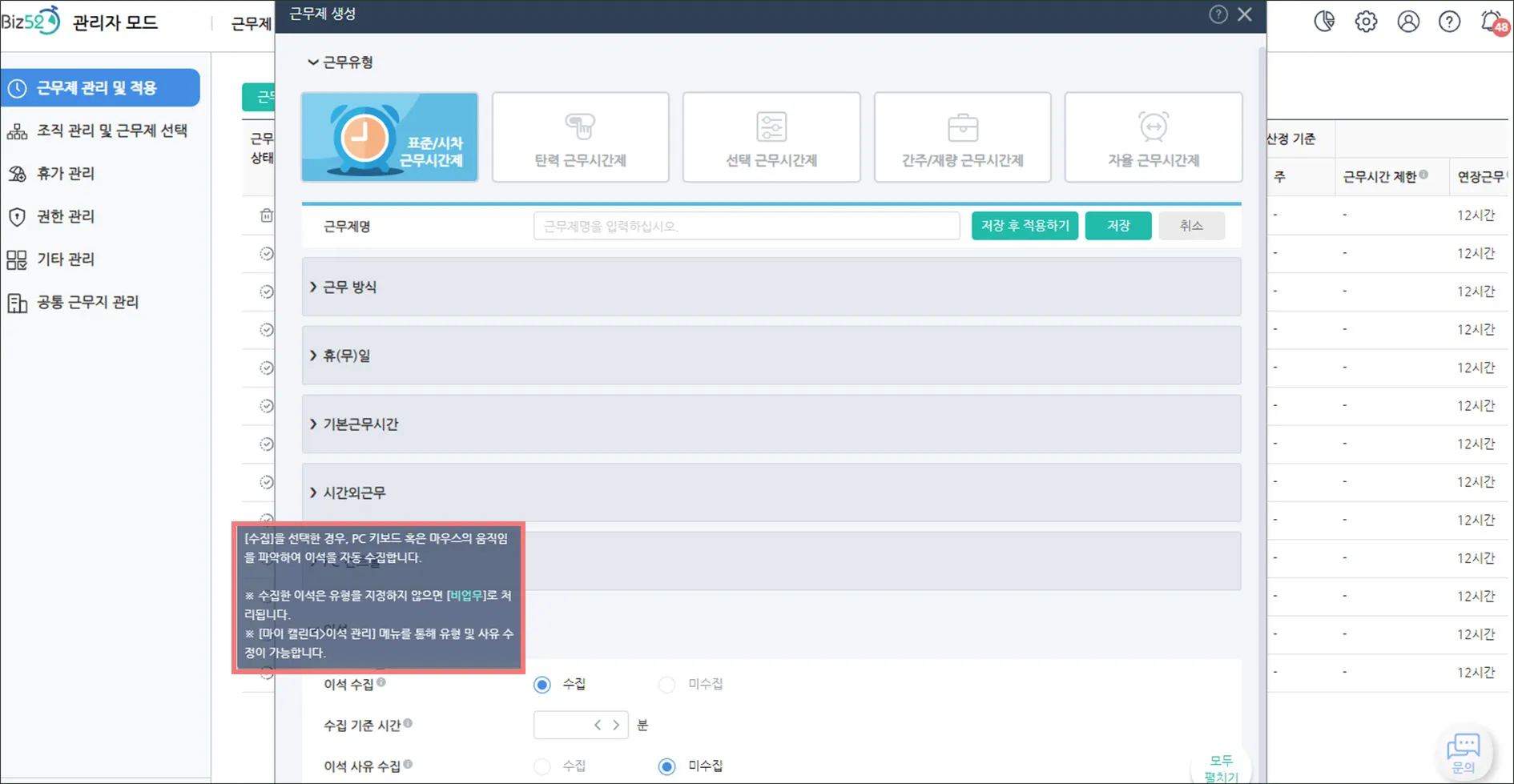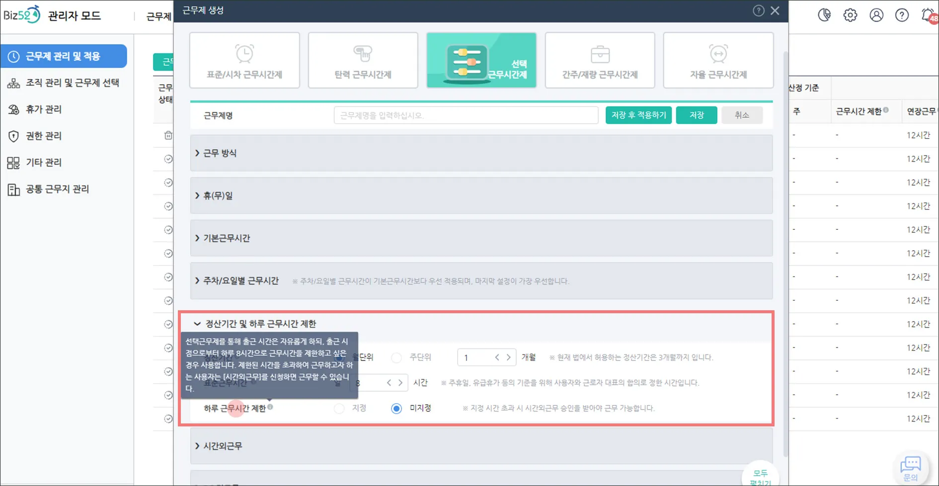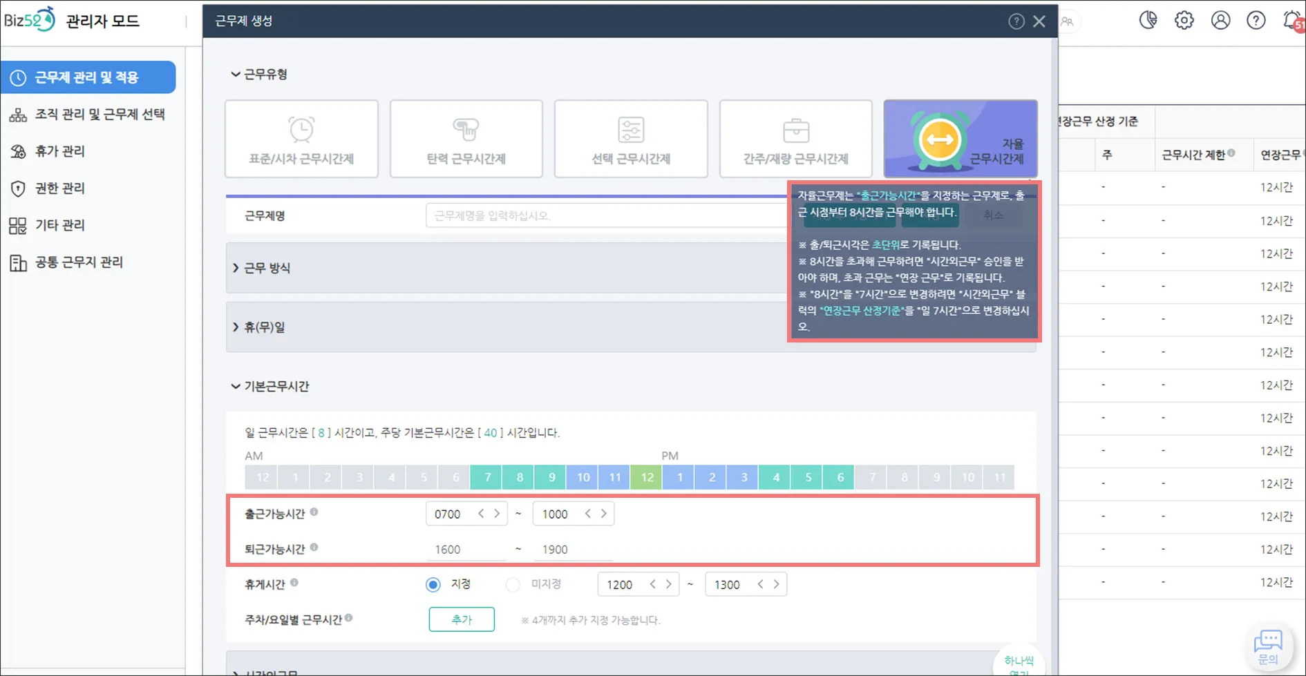 Biz52에 신규 근무제인 “자율근무제”가 추가되었습니다!
