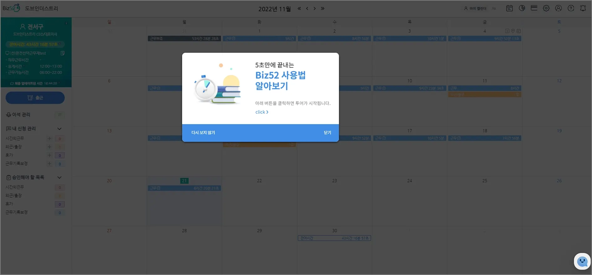 비즈52 첫 화면에는 투어 가이드가 제공되고 있습니다! 이미 [다시 보지 않기]를 해버렸다구요?