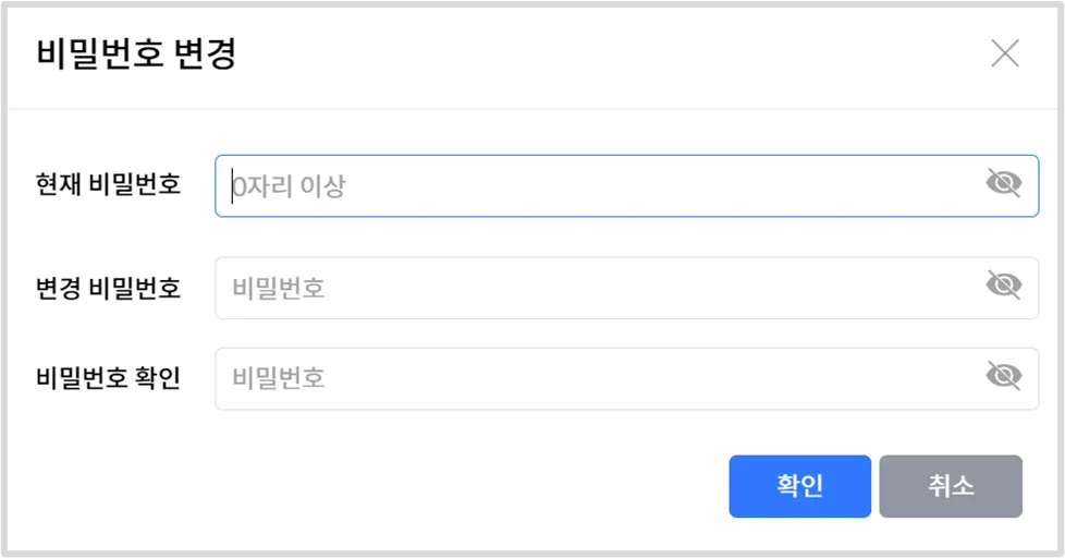 [비밀번호 변경]을 선택해 Biz52 로그인 비밀번호를 변경할 수 있습니다.