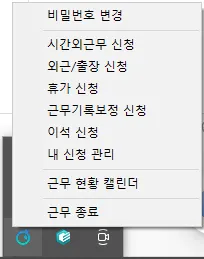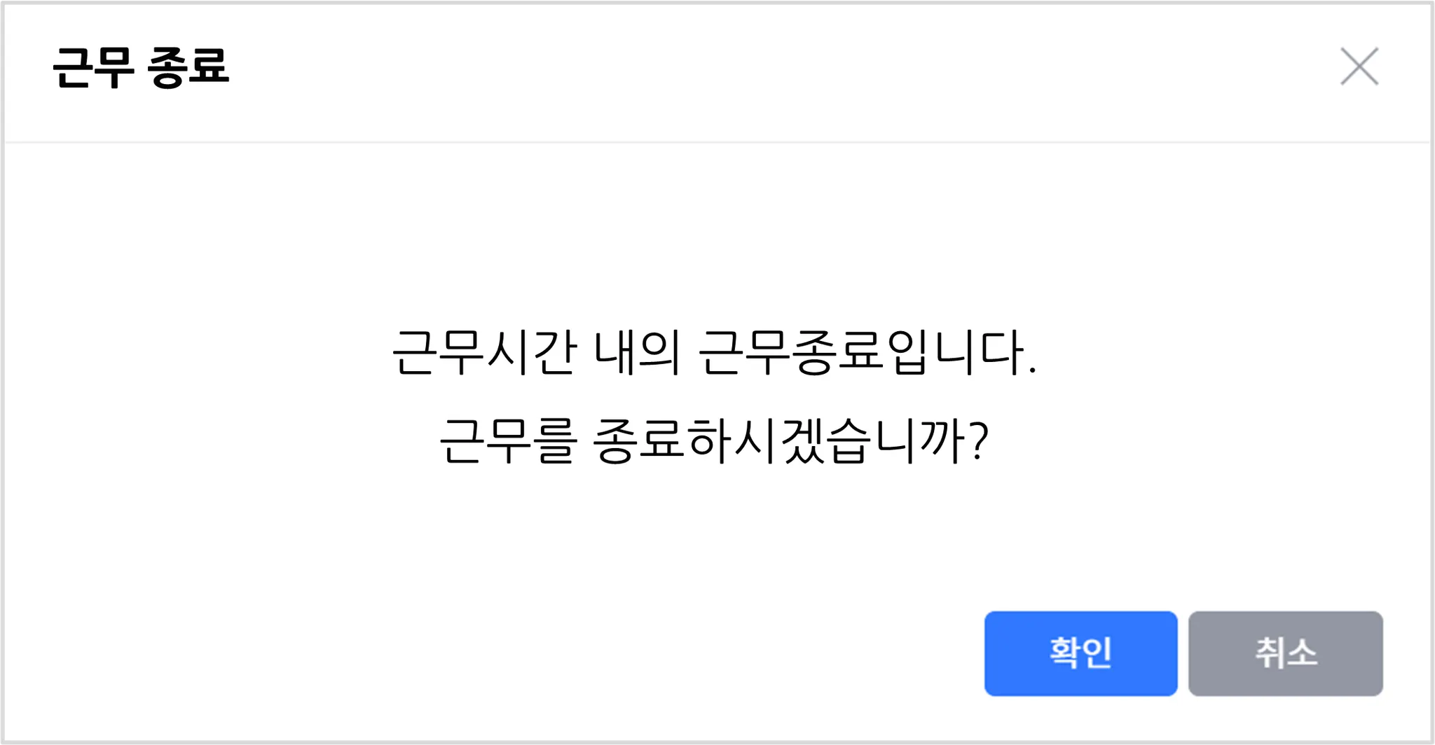 <근무 시간 내에 근무 종료를 누르시면 위와 같은 화면이 나옵니다