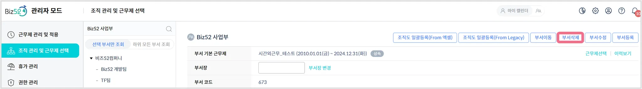 더 이상 사용하지 않는 부서가 있으시다면 부서를 삭제하세요!