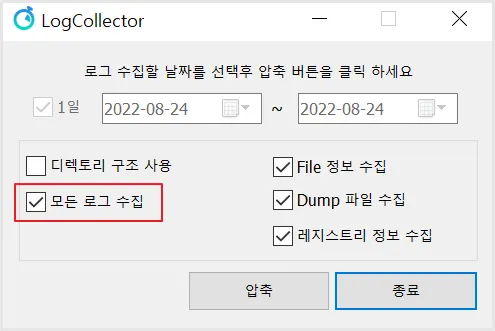 Biz52 에이전트를 설치하면 C드라이브에 DestinyBiz52 폴더가 생깁니다. 해당 폴더 내에 있는 LogCollector를 실행해 주세요.