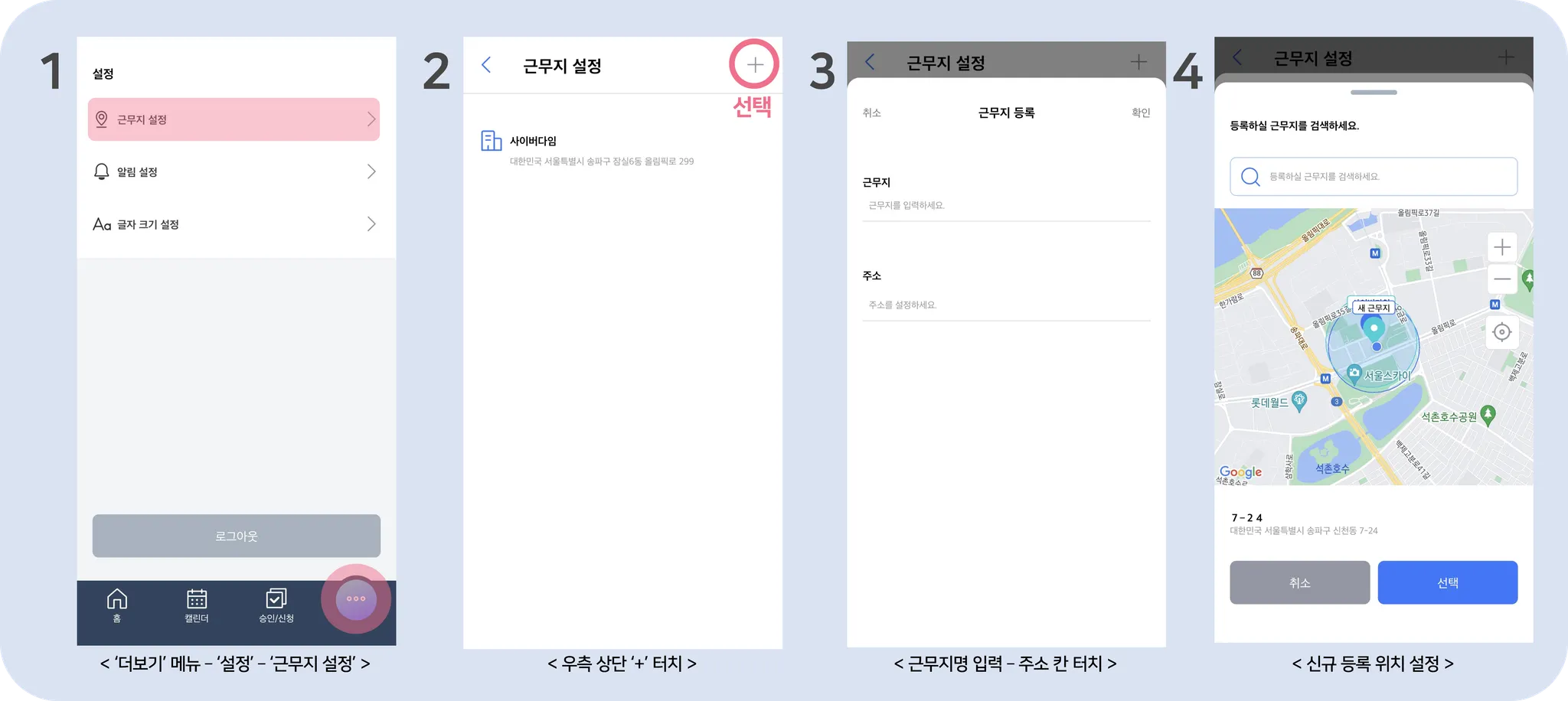재택 근무자의 이석과 근무지 이탈을 체크하고 싶다면? 근무제 관리 방식을 프리미엄 + 위치 기반으로 설정해 주세요.