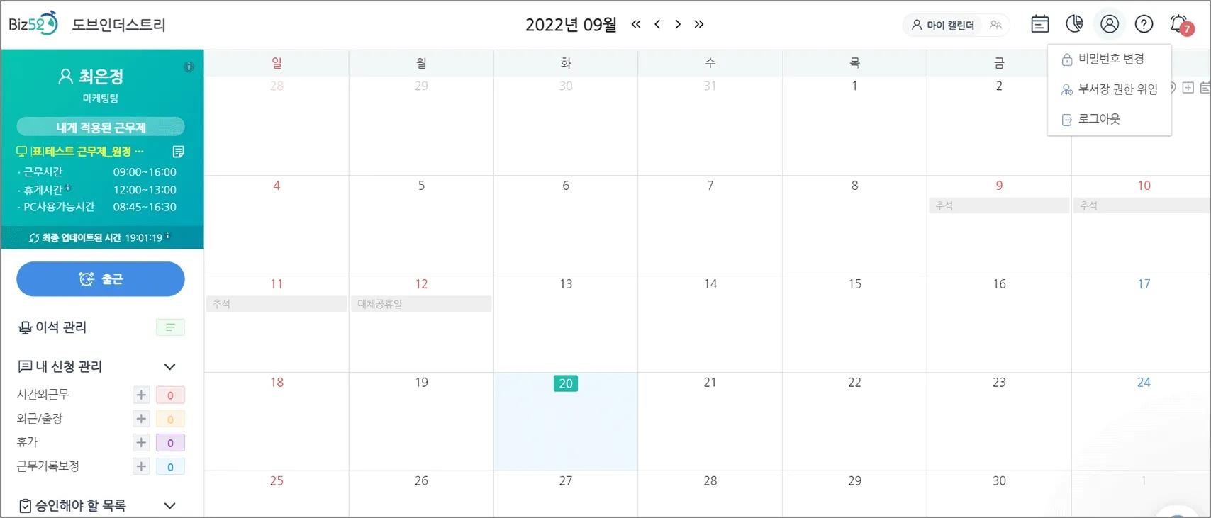 이젠 부서장의 완벽한 휴가를 위해! 비즈52에서 부서장 권한 위임 기능이 추가되었습니다!