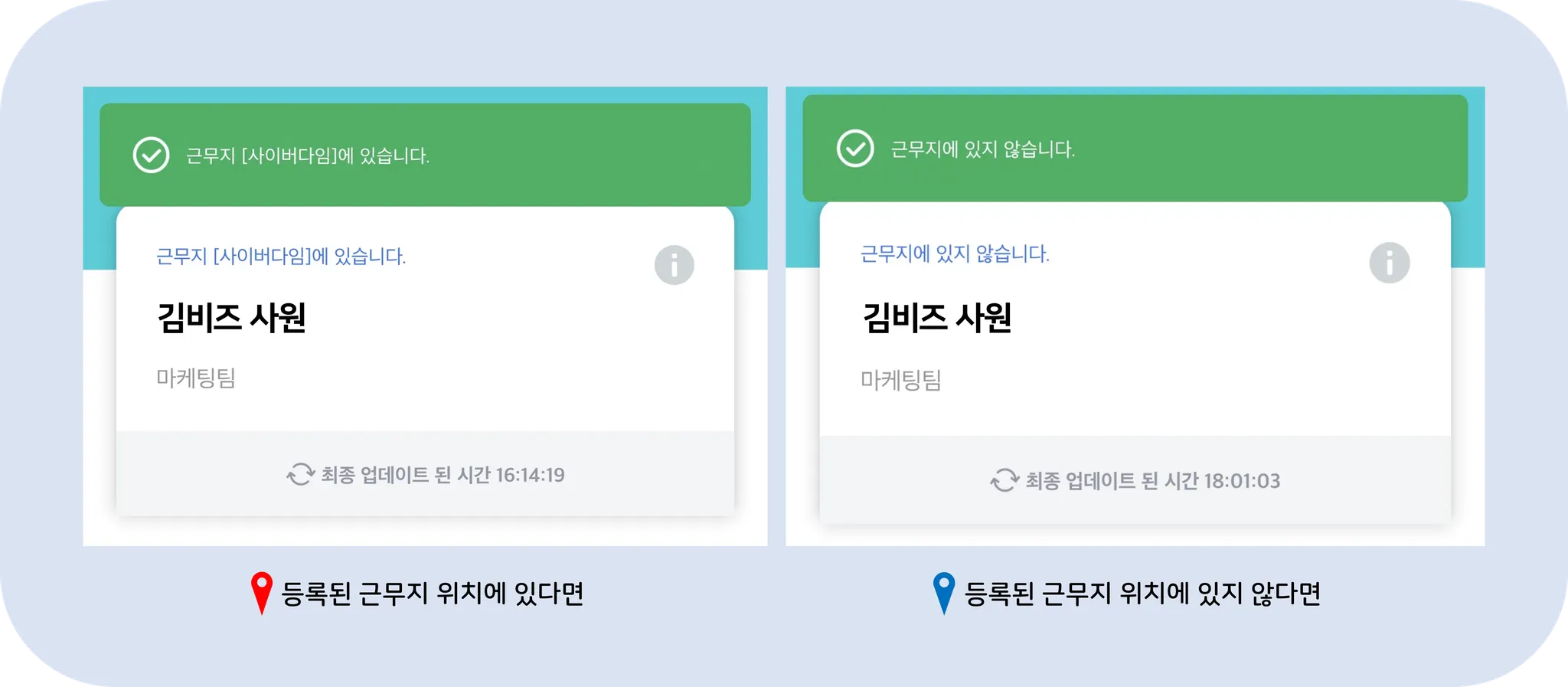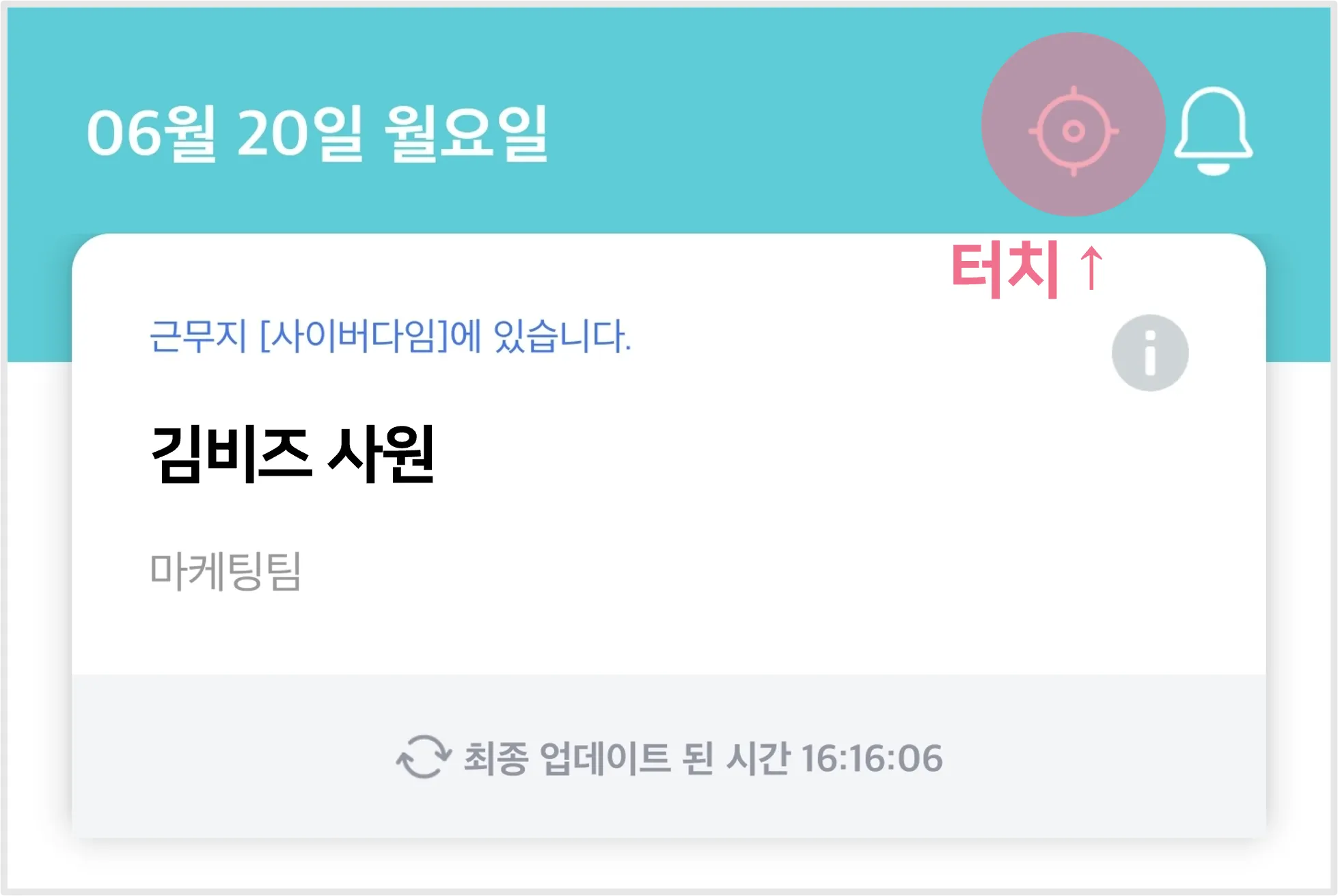 ‘근무지에 있습니다’ 라고 표시가 되어있는 지 확인