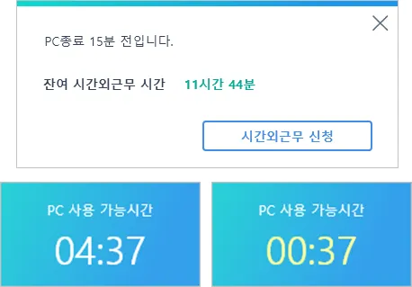 프리미엄 사용자는 근무제에 설정된 근무시간이 종료되면 PC를 사용할 수 없게 되며,