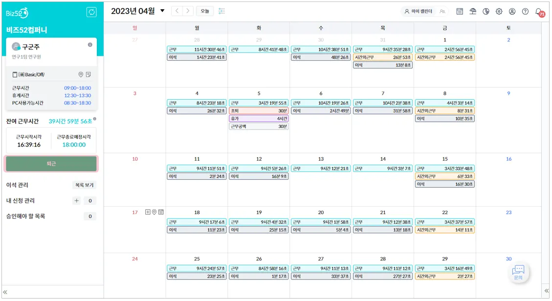 비즈52의 베이직 사용자라면 꼭 알아야 할 출퇴근 기록 방법!