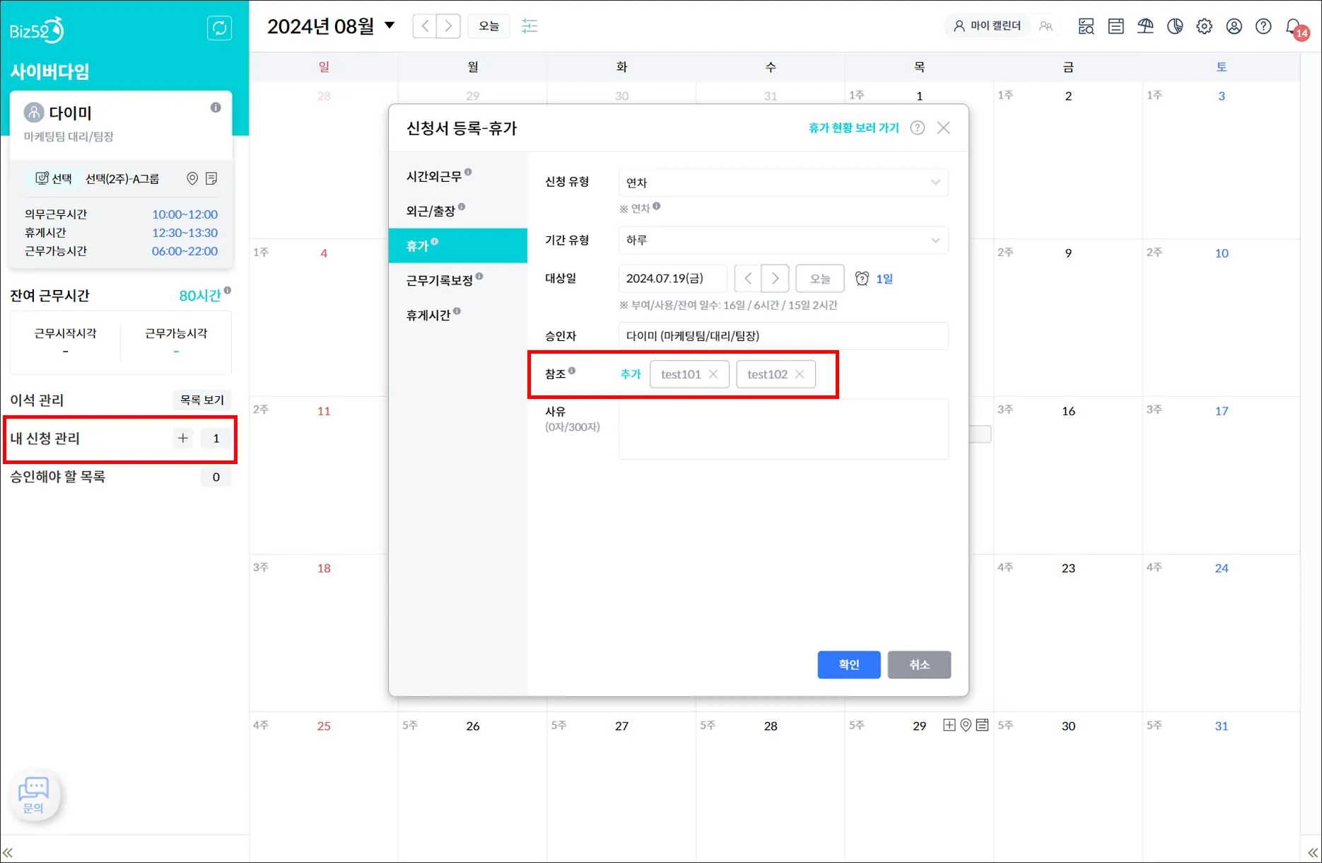 - 신청서 등록 시, “참조자”도 추가할 수 있게 되었습니다.