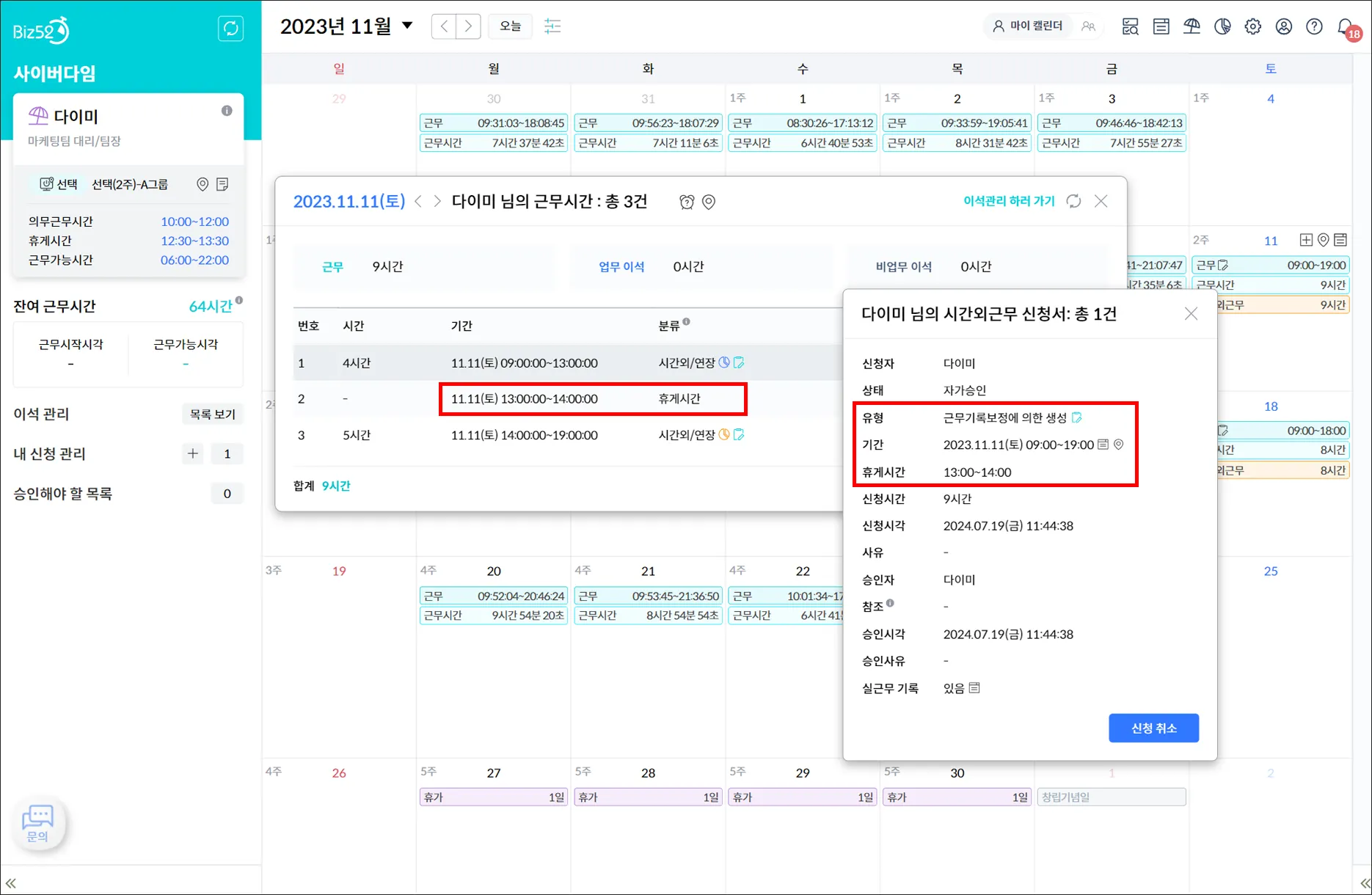 근무기록보정 신청 시 “시간외근무 신청서”가 필요한 경우 Biz52에서 자동으로 생성한다는 것을 알고 계셨나요?