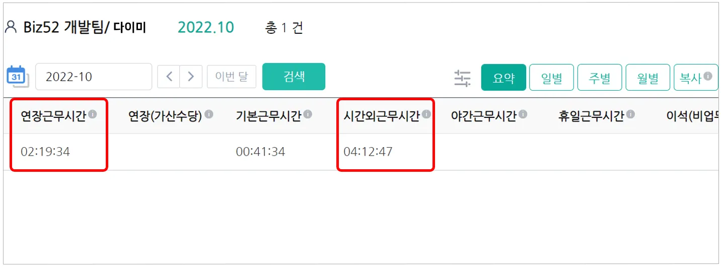 [통계보기] 시간외근무 시간과 연장근무 시간 표기의 차이