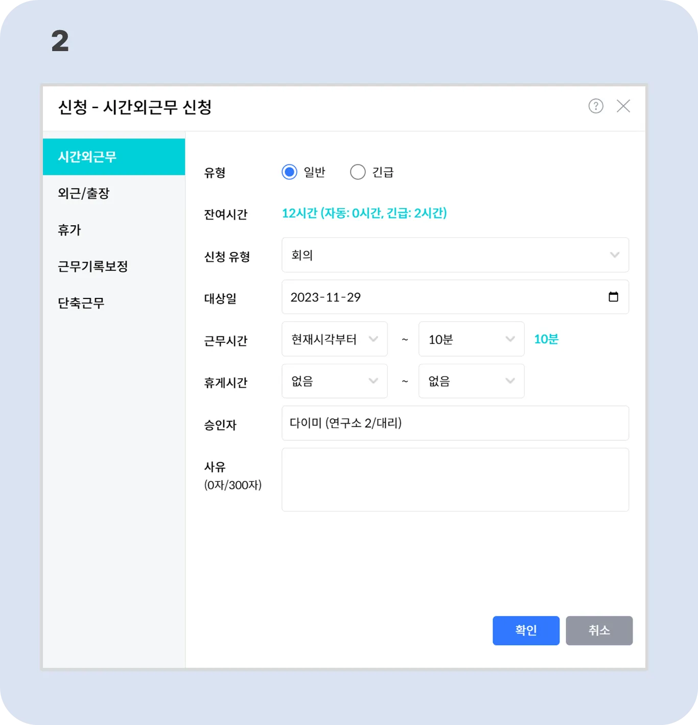 관리자의 승인 없이, 사용자가 자유롭게 시간외근무가 가능하도록 설정하고 싶다면?!